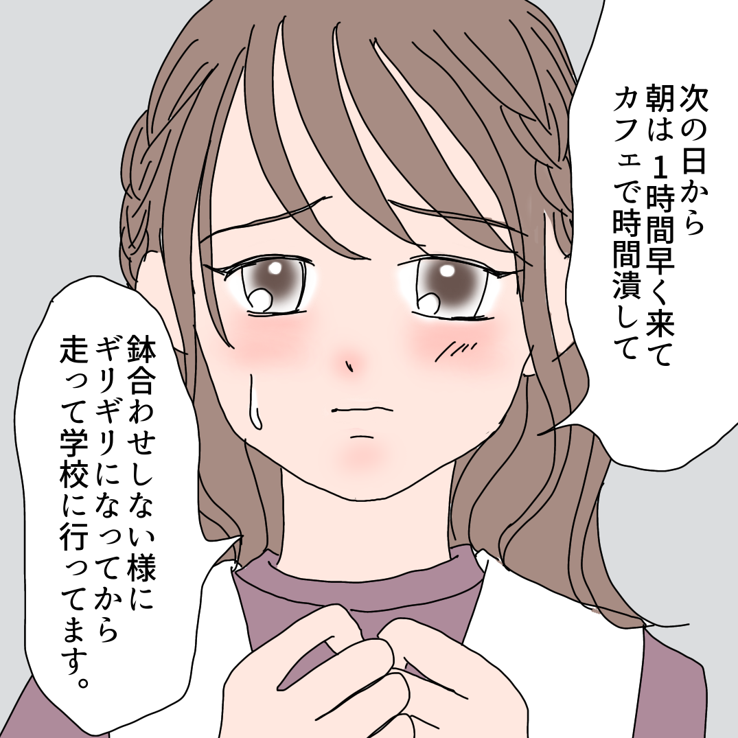 私も一時期バイト先に毎日来るお客さんで、バイトが終わるまで待ち伏せされたり、走って追いかけられたりすることがあったので、この漫画を読んでそのときの記憶がフラッシュバックしました😵💫💦