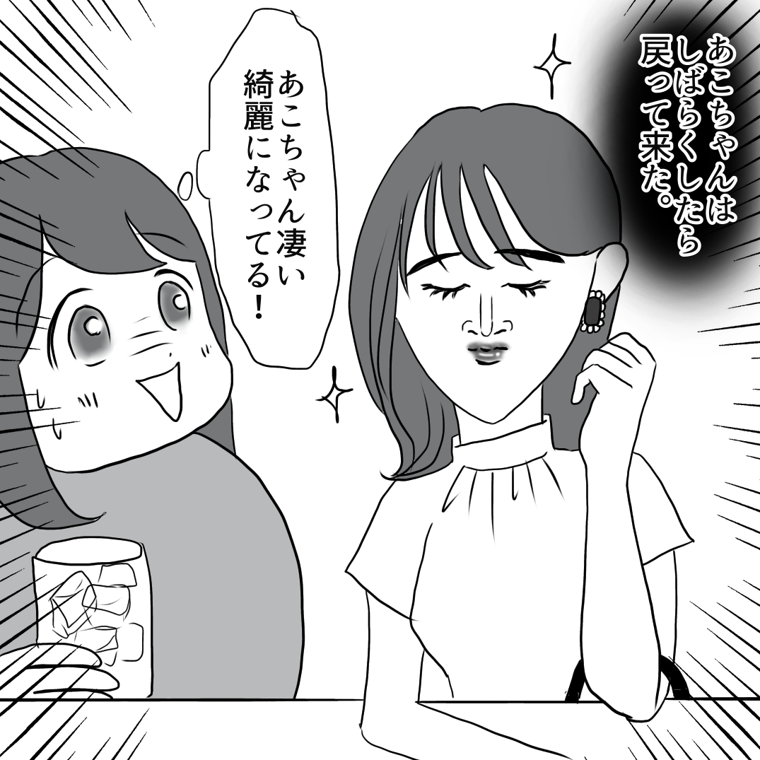 SNSで友達を作ったらひどい目にあった話32 2022年06月11日 前のお話はこちら 次のお話はこちら ブログランキングに参加してみました。もし宜しければポチっと応援 宜しくお願いします☺️✨ 人気ブログランキング 「SNSで友達をつくったらひどい目にあった話」カテゴリの最新記事 < 前の記事次の記事 > コメント コメント一覧 (58) 1. にゃにゃ 2022年06月11日 19:32 やっぱり歳キターーーッ! アコ手を打ってきたな! 0 ふくよかまるみ がしました 2. まる 2022年06月11日 19:34 馬鹿だよね。20代後半から32なんてあっという間なのに。自分は永遠に年取らないと思ってるのかな それより仕事は? 0 ふくよかまるみ がしました 3. なーこ 2022年06月11日 19:35 あこちゃん可愛くなってる! 化粧直しの力ってすごいね!! やっぱり席を外したのは、仕事の話を回避したかったからなんですね。 洋服買ったりブランドバッグ買えるくらいだから、親がお金持ちなのかな??? そしてまるみさんのイヤリング返せー!! 全然人見知りじゃないじゃないか! 0 ふくよかまるみ がしました 4. プチ子 2022年06月11日 19:35 まだイヤリング返してなかったんだね イヤリング早くまるみさんに返しなさい 0 ふくよかまるみ がしました 5. AAA 2022年06月11日 19:36 やっぱりね。 言うと思った,まるみさんより若いアピール。 マウント取れる時には必ず取る人だから。 0 ふくよかまるみ がしました 6. サトシ 2022年06月11日 19:40 若干美化してくんな 0 ふくよかまるみ がしました 7. み 2022年06月11日 19:41 あこ、全然人見知りじゃなさそうでワロタ まるみさんの漫画読んで影響うけて、今日浅草のジーパイを初めて食べてきて、さくさくで軽くて美味しかったです♡ 0 ふくよかまるみ がしました 8. もも 2022年06月11日 19:41 あこ可愛いじゃん!と思いながら読んでたけど、最後のコマでその気持ち吹き飛んだ 0 ふくよかまるみ がしました 9. ち 2022年06月11日 19:42 まるみさんからお願いしまーすて所、自分から先に言えば良くない?笑。職業もだが何かまたありそう。 0 ふくよかまるみ がしました 10. あこ 2022年06月11日 19:49 そんなこったろうと思った。あこも男性陣より年上だよね(゚∀゚) てか、男性も会った瞬間顔チェックしてるでしょ(^◇^;) 質問してるのに立つとか、化粧直しのレベルじゃなく帰ってくるとか、、 一番年上の人に振るとか…男は結構見てるよね(╹◡╹)♡ 0 ふくよかまるみ がしました 11. まむ 2022年06月11日 19:55 あこちゃん変幻してきたら顔のパーツが中心に集中(´-ω-`) 年齢のことになるとうざいな(´-ω-`) あこちゃんは残念の26歳だからね。 0 ふくよかまるみ がしました 12. りおちゃん 2022年06月11日 19:57 ピアス、ナチュラルに私物化してない?笑 返して下さいー! 0 ふくよかまるみ がしました 13. ・ 2022年06月11日 20:01 あこ(笑)とんでもない地雷メイクになるんかと思ったら。やれば出来るじゃん✨ 0 ふくよかまるみ がしました 14. 2022年06月11日 20:01 速く続きがみたい!! 0 ふくよかまるみ がしました 15. すごっ気合いいれてる笑 2022年06月11日 20:02 別人になってるけど最後の顔が 年齢まるみちゃんから言わせて いじるんかなぁ まるみちゃんもトイレに逃げようー 0 ふくよかまるみ がしました 16. ひど。。 2022年06月11日 20:08 友達だし、利用するとか考えなかった自分が悪い。。とかまるみさん思っていそうですね。。化粧なおせるんだ。まるみさんのイヤリング返してないな。お金もそのままねこばばするのかな。 0 ふくよかまるみ がしました 17. てん 2022年06月11日 20:08 もう!またまるみちゃんに仕掛けてくる(怒!!! この飲み会最後らへんにスカッとならないかなぁとほんのり期待してる自分がいる 0 ふくよかまるみ がしました 18. ムーミン谷の住人 2022年06月11日 20:08 モテたい欲があるアコうける笑笑 で、年齢はやっぱりまるみさんから言わせるか 最後のコマの顔よ 0 ふくよかまるみ がしました 19. haru 2022年06月11日 20:14 ロックオンしたから化粧直しに行ったのか! 化粧直ししても性格が顔に立ててるよ。やっぱり年齢弄りしてくるし、ていうか浴衣じゃなくなったんだからイヤリング返して。 0 ふくよかまるみ がしました 20. アゴ生理的に無理😨 2022年06月11日 20:17 早くスカッとしたいです、この一言に尽きます🤣 0 ふくよかまるみ がしました 21. あ 2022年06月11日 20:31 まるみさん、あこの仕事ここで聞いちゃえよ w 0 ふくよかまるみ がしました 22. ビール 2022年06月11日 20:32 あまりにも性格悪くて 何て言って良いのか〜 0 ふくよかまるみ がしました 23. うーん 2022年06月11日 20:34 あこさん働いてないね。仕事の話にまたならないかな。じゃないとスッキリしない。お金払うので痛い目にあわなあいかな。 0 ふくよかまるみ がしました 24. はるはるランド 2022年06月11日 20:46 いいか、女は30過ぎてからが味が出るんだ。 0 ふくよかまるみ がしました 25. mimi 2022年06月11日 20:47 出た出た… 不細工があざとさ出すのはキモいしウザいだけって分かってないなあー 0 ふくよかまるみ がしました 26. みゆ 2022年06月11