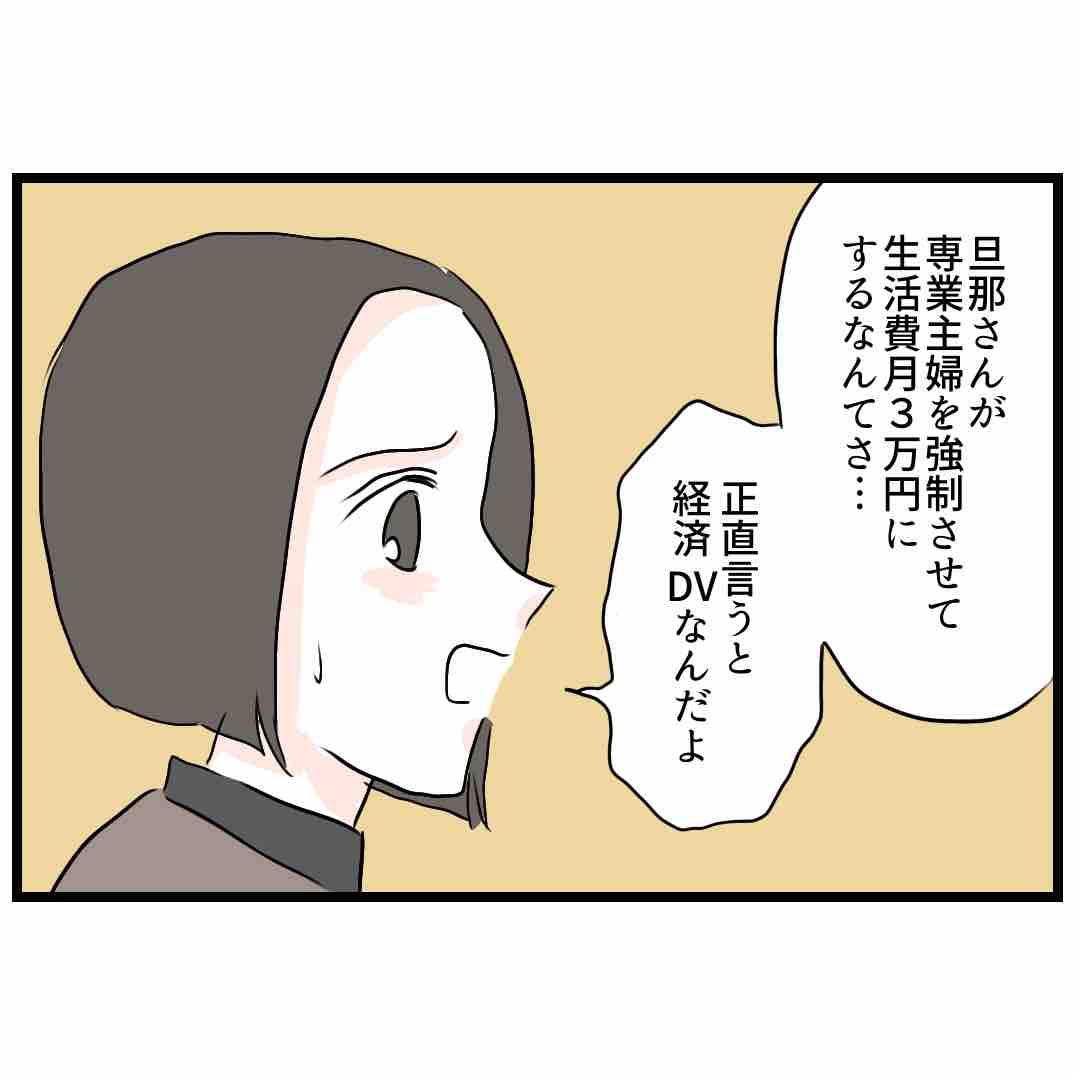 生活費は月3万円です16 2025年01月15日 つづく…こちらのお話はAmazonで18話まで先読みが出来ます。無料ですのでぜひ☺️↓↓ こちらの①に18話分をまとめてあります💁♀️✨ 「生活費は月3万円です」カテゴリの最新記事 < 前の記事次の記事 > コメント コメント一覧 (7) 1. 同じように経済DVされたバツイチです 2025年01月15日 19:38 仕事を探しながら、離婚の準備をした方が良い カネオみたいなアホと一緒にいるのは 時間の無駄 0 ふくよかまるみ がしました 2. かねこ 2025年01月15日 19:43 仕事しなくても、対等なんだよ、本来の夫婦は。 カネオの求める家事を提供してるんだから。 仕事して自分に収入ができても、カネオが変わらなかったら根本解決にならないよなぁ…。 0 ふくよかまるみ がしました 3. もう気持ち冷めてれば 2025年01月15日 20:30 >>2 捨ててしまおう、そんなカネオなんさ不用でしょうよ 0 ふくよかまるみ がしました 4. はぁ😞💨 2025年01月16日 03:22 何故離婚しないで生活費稼ぐ事を考えるんだ 家事はそのまま自分がやるんだから全然対等じゃないし、むしろ負担大じゃないの? この友達も何なんだろう アホにはアホの友達しか居ないのかな 0 ふくよかまるみ がしました 5. あお 2025年01月16日 06:47 この状態で仕事始めた人知ってますが、結局貯金切り崩し補填が自分の少ないパートのお給料から補填に変わっただけでしたよ。 むしろ働いてるんだから、子どもの誕生日プレゼントも夫婦で折半ね!とわけわからない事になってました。 0 ふくよかまるみ がしました 6. 分からん 2025年01月16日 08:03 仕事始めて対等にっていうけど、これまでの自分の貯金崩して生活した3年分の生活費支払いだけでも充分に対等なんですけど!? 0 ふくよかまるみ がしました 7. あ 2025年01月17日 01:10 なんだか全体的にこの奥さん頭が弱すぎない? なんか専業主婦が下で、金稼いでるのが上みたいな。 だから、働いて対等になるって発想になるんだよね。 でもさ、そもそもこういう旦那の理論って「同等の金額を稼いで対等」だと思う。 中で働く仕事と外で働く仕事は対等であると思ってる。 私ならそもそも「そんなに言うなら3万で全部やってくれ。見本見せろよ?とりあえず半年。それが出来たら私の甘さを認めて頑張る」って言って旦那にやってもらえば良いんだよ。 お金の事が言えない。なんて生活の事なんだから。 こんな奥さんじゃ誰も同情しないよ。 一生旦那の尻に敷かれてば良いと思う。 0 ふくよかまるみ がしました コメントフォーム 名前 コメント 記事の評価 リセット リセット 顔 星 情報を記憶 コメントを投稿する