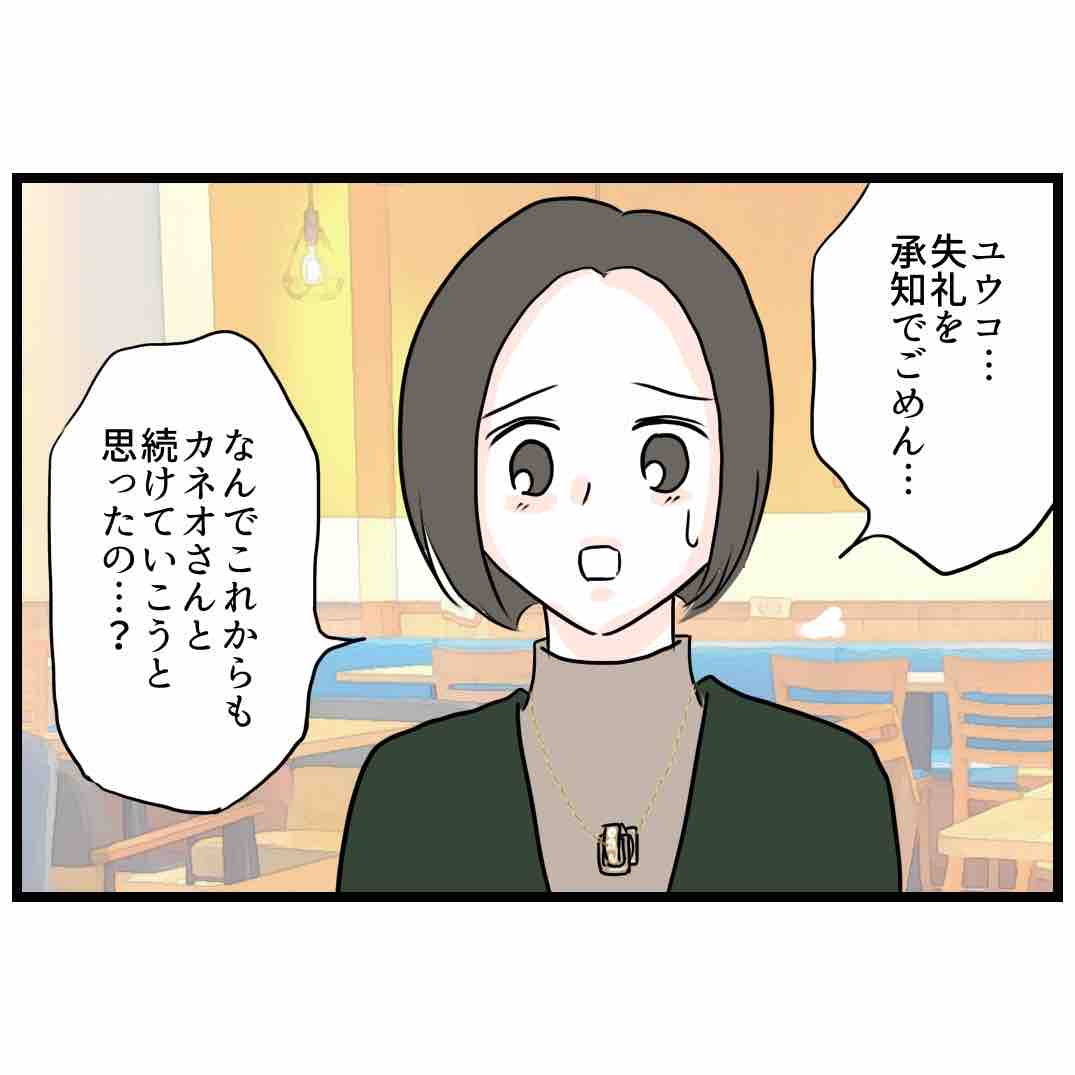 この先、またカネオがユウコさんを苦しめて、ユウコさんが資金がなくて身動きできないとなっても同情できないわ。